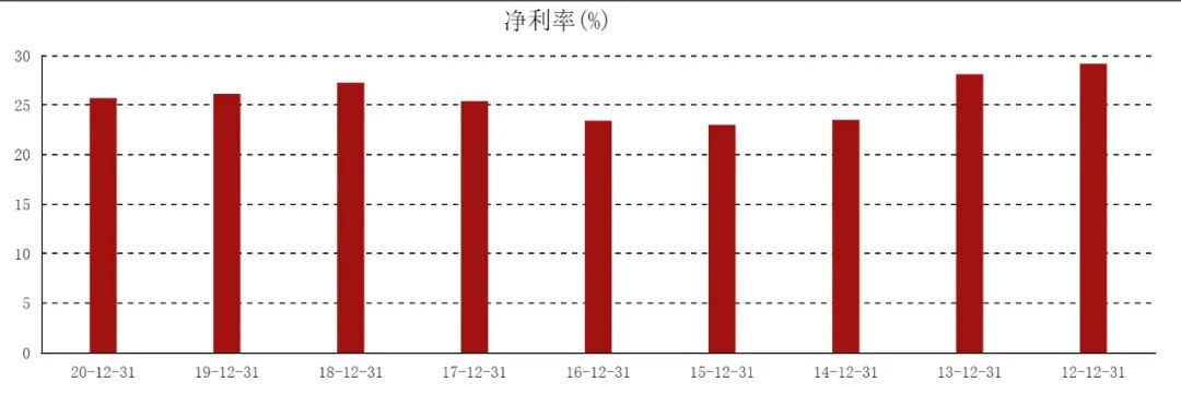 實際上,從年報披露的數(shù)據(jù)來看,2018、2019、2020年,中海地產(chǎn)的凈利率已經(jīng)呈現(xiàn)走低趨勢,分別為27.2%、26.1%、25.7%。