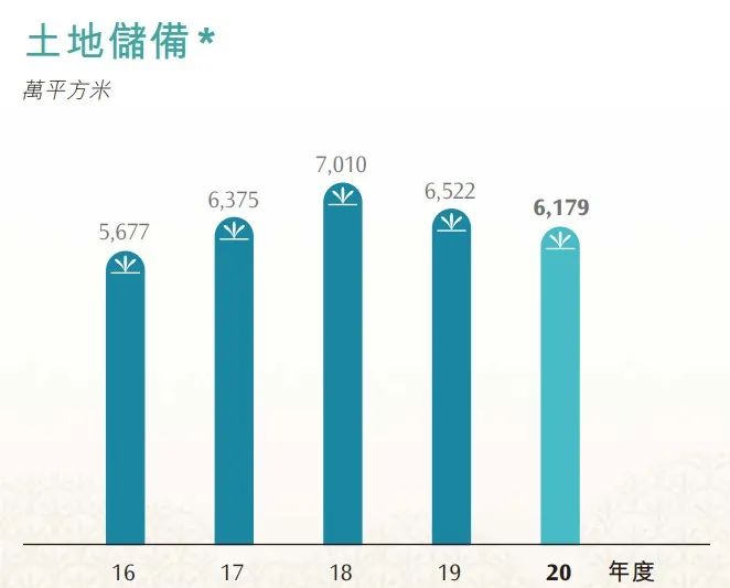 從2020年報里,杠桿地產(chǎn)看到,其在2018年、2019年、2020年的土地儲備分別為7010萬平米、6522萬平米、6179萬平米,每年下降3、4百萬平米。