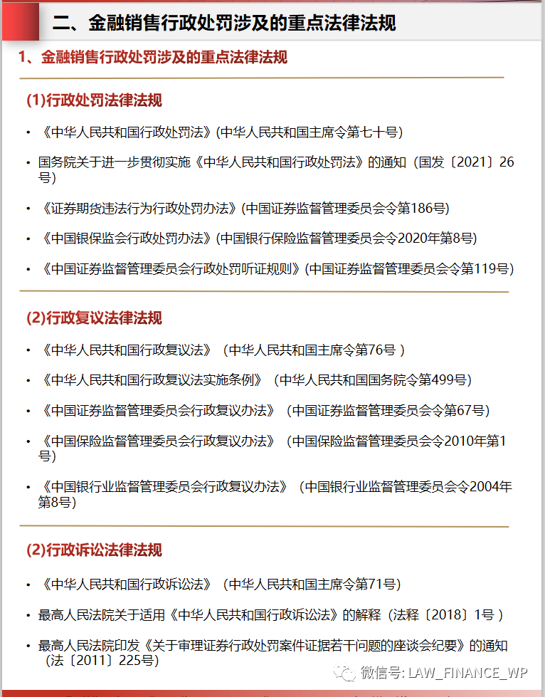 二、金融銷售行政處罰涉及的重點(diǎn)法律法規(guī)