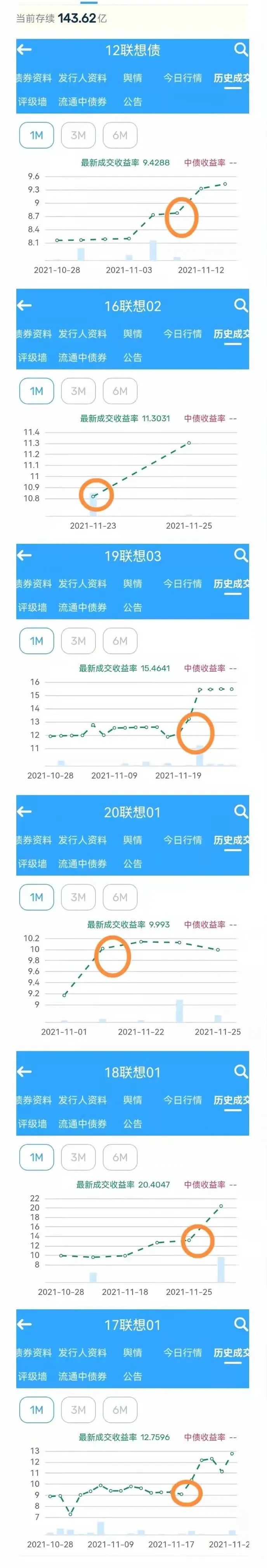 前幾個月,聯想債券異常成交率高,但金額小,每次最多幾十萬元,就是一筆折價很多、收益率很高的極小額交易。