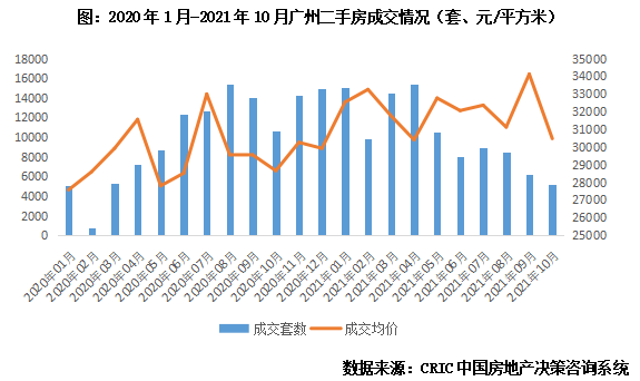 受到增值稅征免年限調(diào)整、房貸額度管控等影響,5月以來(lái),廣州二手房成交量拾級(jí)而下。4月,廣州市9區(qū)住宅銷(xiāo)售增值稅征免年限由2年提高至5年,增加了二手房交易成本,導(dǎo)致5月以來(lái)掛牌量顯著下降,6月二手房成交罕見(jiàn)跌破1萬(wàn)套,同比驟降34%,8月末廣州發(fā)布二手房指導(dǎo)價(jià),9月二手房成交量應(yīng)聲下跌,僅為6191套,同、環(huán)比分別下滑56%和27%,10月,二手房成交環(huán)比繼續(xù)跌16%。