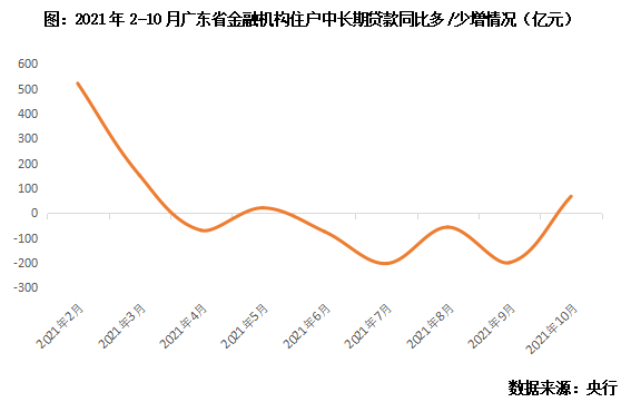 視角延伸到廣東全省,10月廣東居民中長(zhǎng)期貸款同比止跌回升,但反彈幅度較為有限。具體而言,2021年10月,廣東住戶(hù)部門(mén)中長(zhǎng)期貸款增加651億元,環(huán)比少增117億元,同比多增67億元,一改6月以來(lái)連續(xù)4個(gè)月同比少增的走勢(shì),但反彈幅度仍然比較有限。