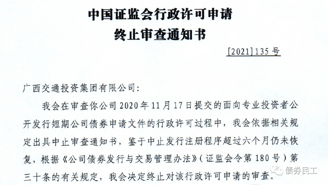 根據(jù)中國(guó)證監(jiān)會(huì)網(wǎng)站2021年11月2日披露的信息,有5只小公募公司債券被終止,終止的原因是中止注冊(cè)發(fā)行程序超過(guò)六個(gè)月仍未恢復(fù)。經(jīng)查詢《公司債券發(fā)行與交易管理辦法》,其中第三十條第八款“發(fā)行人中止發(fā)行上市審核程序超過(guò)證券交易所規(guī)定的時(shí)限或者中止發(fā)行注冊(cè)程序超過(guò)六個(gè)月仍未恢復(fù)”。因此上述公司債券的終止屬于正常事項(xiàng)。