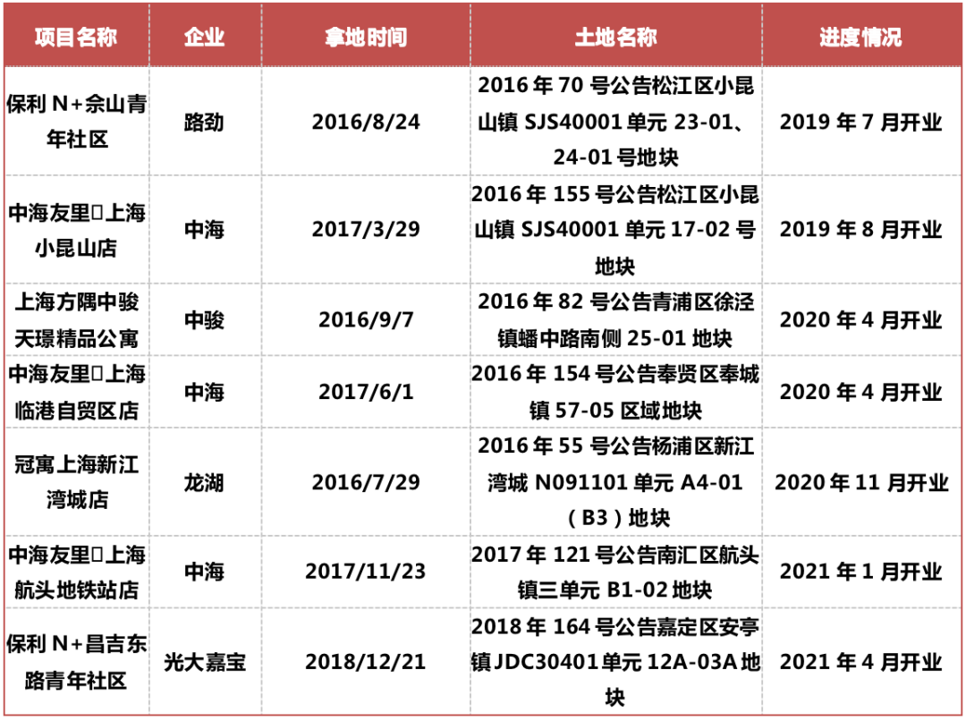 上海純租賃用地項(xiàng)目入市情況