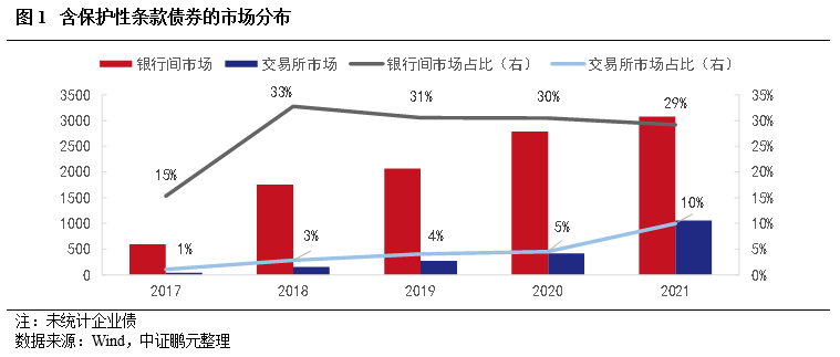 分市場看,保護性條款觸發的債券以銀行間品種為主,占比78%,在所有銀行間違約債券中占比17%;交易所市場上述占比分別為22%和3%。