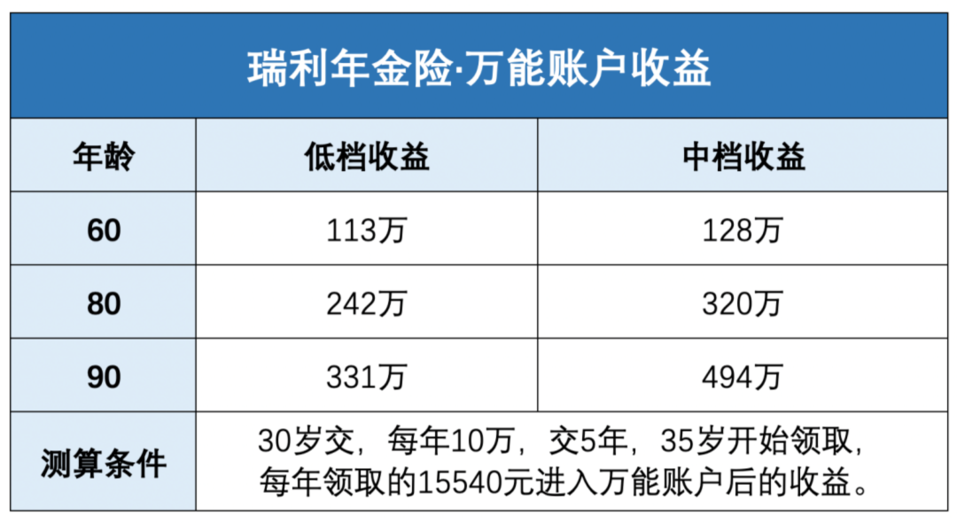 就是買了瑞利年金保險,5年后可以開始領錢,如果不著急用錢,錢可以轉入萬能賬戶。