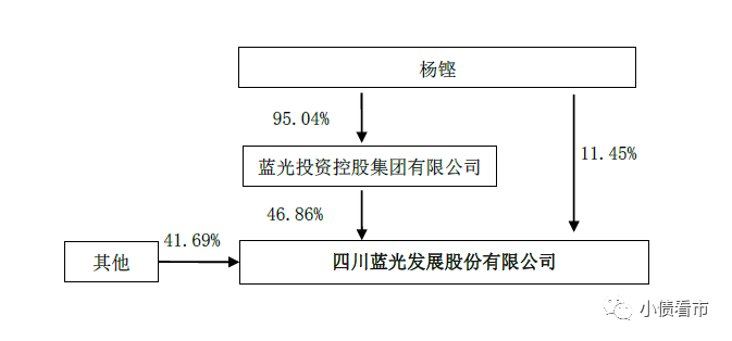 從股權(quán)結(jié)構(gòu)上來(lái)看,藍(lán)光發(fā)展的控股股東為藍(lán)光控股,持股比例為46.86%,穿透后公司實(shí)控人為楊鏗。