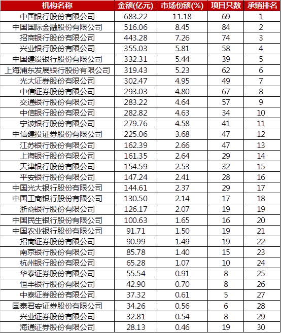 三、證監會主管ABS承銷排名