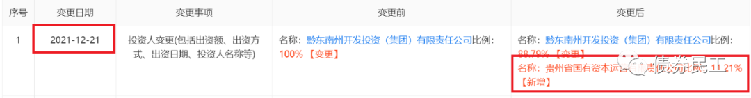 4、2021年12月27日,貴州國資公司成為黔西南州水資源開發投資有限公司(實際控制人黔西南州國資委)持股比例為11.2988%的股東。
