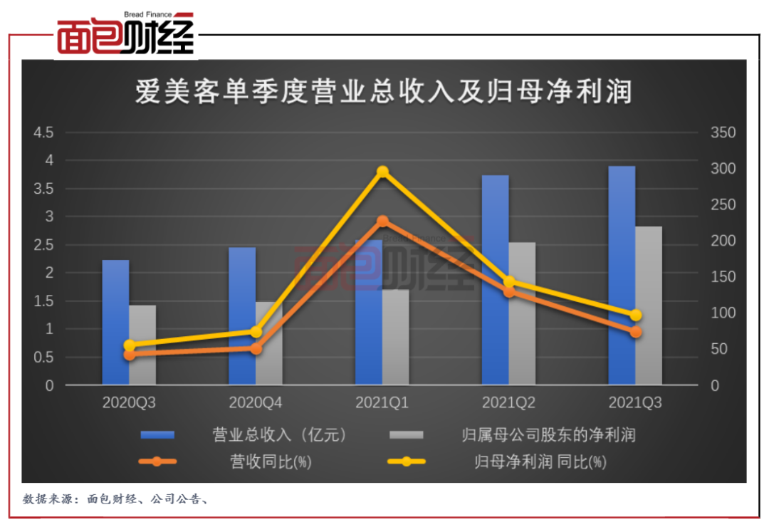 三季報顯示,公司第三季度實現營收3.90億元,歸母凈利潤2.83億元。值得注意的是,分季度來看,愛美客的營收增速及歸母凈利潤增速均呈下降趨勢。2021年第三季度,公司的營收增速為75.09%,相對比第二季度下降54.83個百分點。公司的歸母凈利潤增速為98.01%,相比上季度下降46.37個百分點。公司的長期增長持續性值得關注。