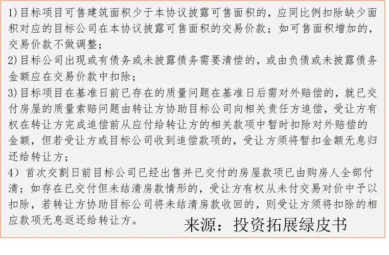 轉讓方完成已售房屋所產生的土地增值稅和企業所得稅清繳;轉讓方完成除玉蘭苑外全部工程款項的結清(直至該等工程完成竣工驗收備案為止)。