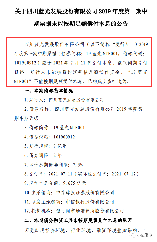此前7月8日,藍光發(fā)展已公告稱由于公司流動資金不足,“19藍光MTN001”本息兌付存在不確定性。