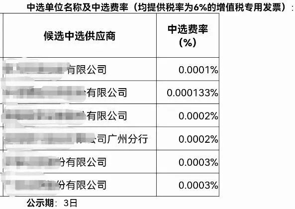 根據(jù)某銀行2021年8月9日的公告信息,選聘600億元金融債券發(fā)行服務(wù),共有6家承銷商中標(biāo),中選費率最低為0.0001%(百萬分之一),最高為0.0003%(百萬分之三)。 也就是說,如果按照最低中選費率計算算,600億元金融債券的承銷費只有6萬元!這和2021年2月某頭部券商1萬元中標(biāo)某銀行無固定期限資本債券的承銷費率真的是有異曲同工的感覺。