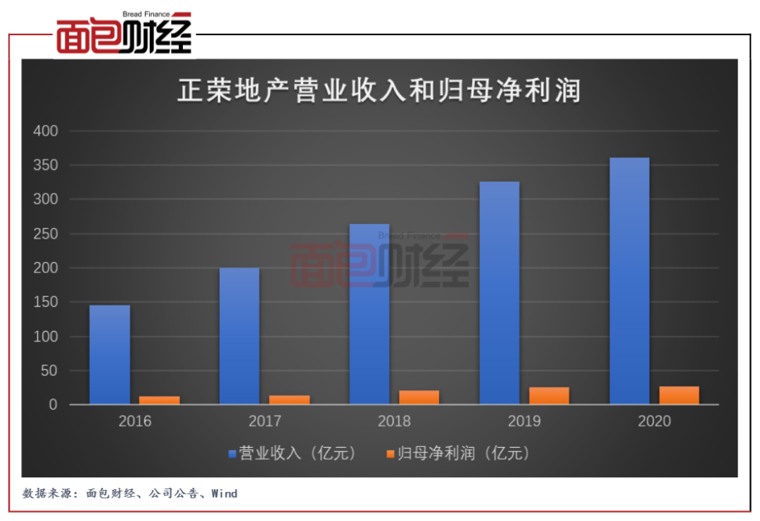 年報(bào)顯示,正榮地產(chǎn)2020年實(shí)現(xiàn)營業(yè)收入361.26億元,同比增長約10.96%;歸母凈利潤26.51億元,同比增長約5.79%。公司的業(yè)績增速達(dá)到近五年來最低水平。