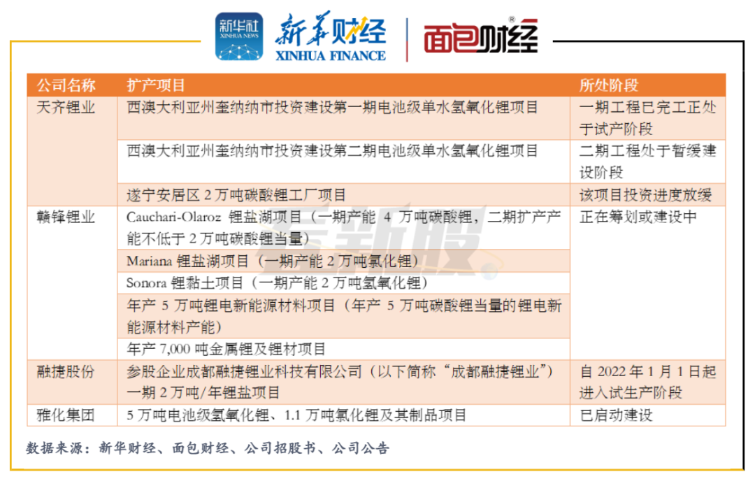 圖11:部分鋰業(yè)公司的擴(kuò)產(chǎn)項(xiàng)目