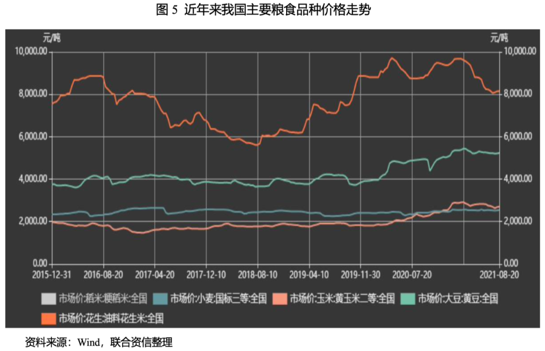 2021年1月,根據《中共中央關于制定國民經濟和社會發展第十四個五年規劃和二〇三五年遠景目標的建議》目標任務,2021年,農業供給側結構性改革深入推進,糧食播種面積保持穩定、產量達到1.3萬億斤以上。“十四五”時期各省(自治區、直轄市)要穩定糧食播種面積、提高單產水平,我國糧食自給率有望提高。同時,2020年以來,大豆、玉米、小麥、花生等各主要農作物價格上漲,有望帶動其播種量增加。未來尿素農業需求有望保持溫和增長。