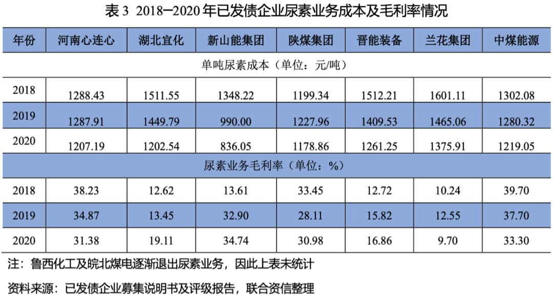 已發債企業中尿素產品毛利率相差較大,主要系生產工藝、裝置規模、原材料獲取能力、是否產生協同效應等原因所致。