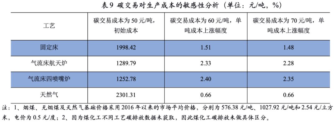 原材料對煤化工企業的生產成本影響很大。當前大型煤炭企業均布局煤化工業務,主要基于其原料保障能力。提高煤炭資源的利用率、降低產品的碳單耗,既能減少碳排放,又能降低生產成本。