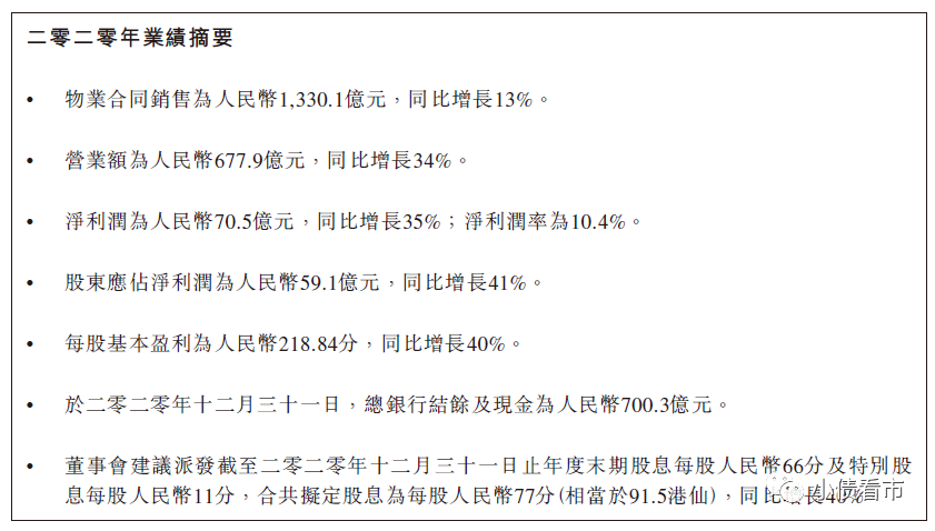 據(jù)業(yè)績(jī)公告顯示,2020年中國(guó)奧園實(shí)現(xiàn)營(yíng)業(yè)收入677.9億元,同比增34%;實(shí)現(xiàn)歸屬股東凈利潤(rùn)59.1億元,同比增41%。