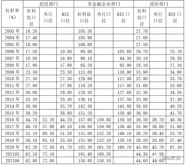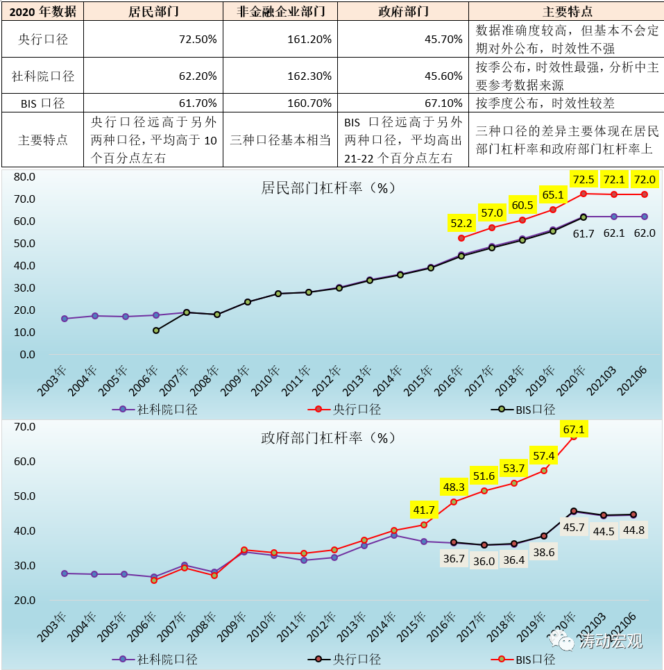 (三)三種口徑的差異主要體現(xiàn)在居民部門(mén)杠桿率和政府部門(mén)杠桿率。