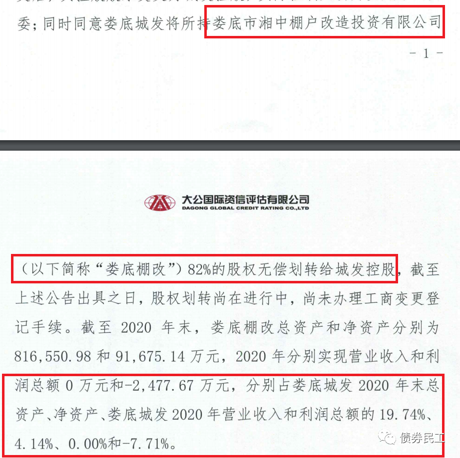 4、婁底市城市發(fā)展集團(tuán)有限公司(主體信用評(píng)級(jí)為AA)公告,將公司持有的婁底市湘中棚戶區(qū)改造投資有限公司82%的股權(quán)無償劃轉(zhuǎn)給婁底市城市發(fā)展控股集團(tuán)有限公司(控股股東為婁底市國(guó)資委)。