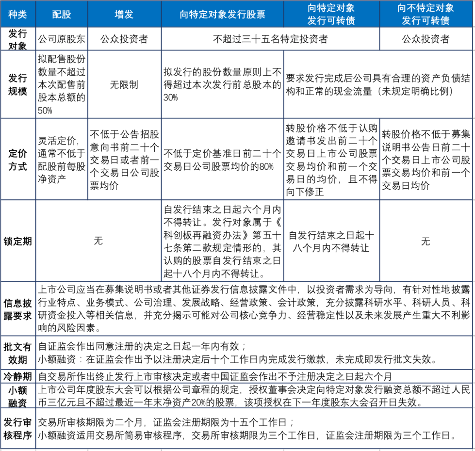 2. 明確各類證券品種的發(fā)行條件:區(qū)分向不特定對(duì)象發(fā)行和向特定對(duì)象發(fā)行,差異化設(shè)置各類證券品種的再融資條件。