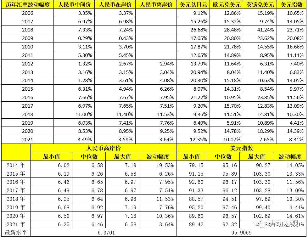 3、2021年匯市波動幅度明顯小于歷年,全年波動幅度不到4%。同時美元指數開始走強,全年上揚近7%。