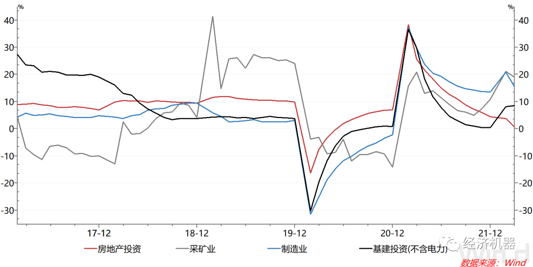 分行業看,3月房地產投資累計增速下滑3個百分點,回落至0.7%,反映房地產市場依然低迷;基建投資累計增速達8.5%,較上月提升0.4個百分點,表明基建仍在持續發力。這與過去兩年不到1%的增速有顯著提升。在當前疫情干擾供應鏈、消費和服務的背景下,基建對穩增長意義愈發重要,隨著經濟下行壓力加大,基建很可能繼續提速。