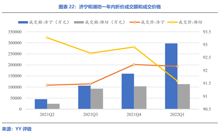 05 折價成交 總體折價規模逐漸上升,濟寧和濰坊成交額較大