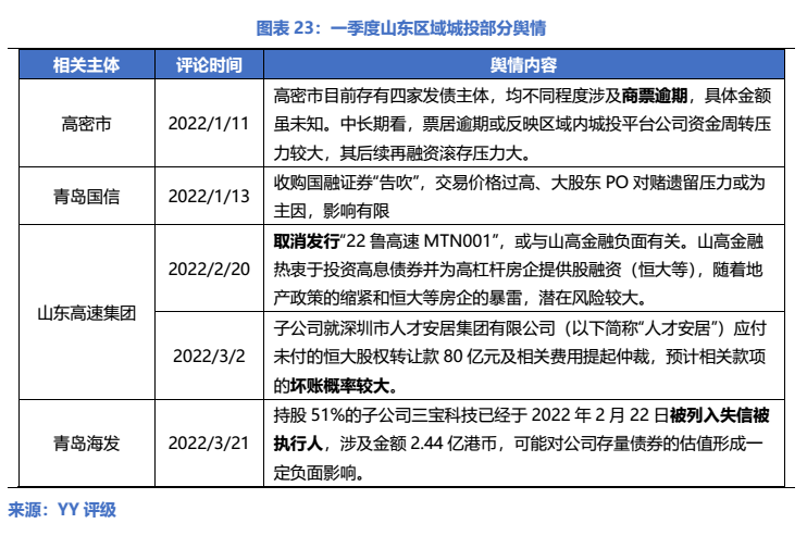 在2022年一季度中,有3家城投主體為首次發債,分別為濟南能源集團有限公司、濟南市中控股集團有限公司和榮成市城建投資開發有限公司,發行金額合計為25億元。