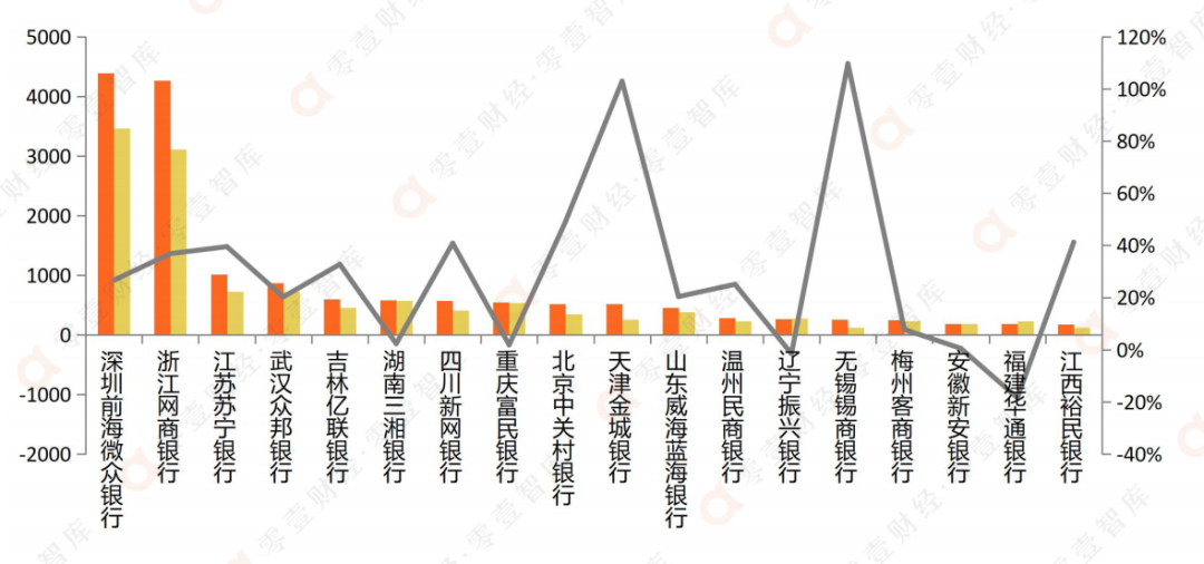 資料來源:企業(yè)預(yù)警通與民營銀行年報,零壹智庫