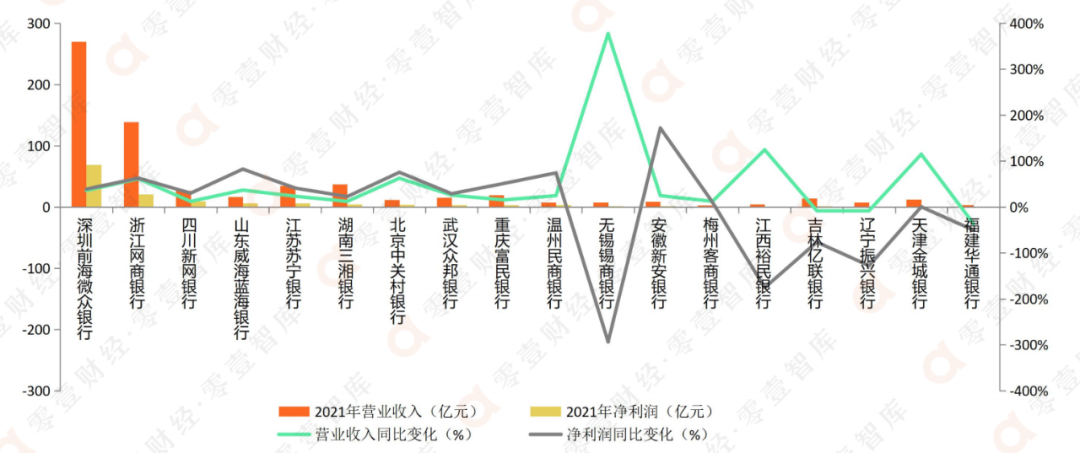 圖 3:18家民營銀行2021年度營業(yè)收入與凈利潤分析(單位:億元、%)