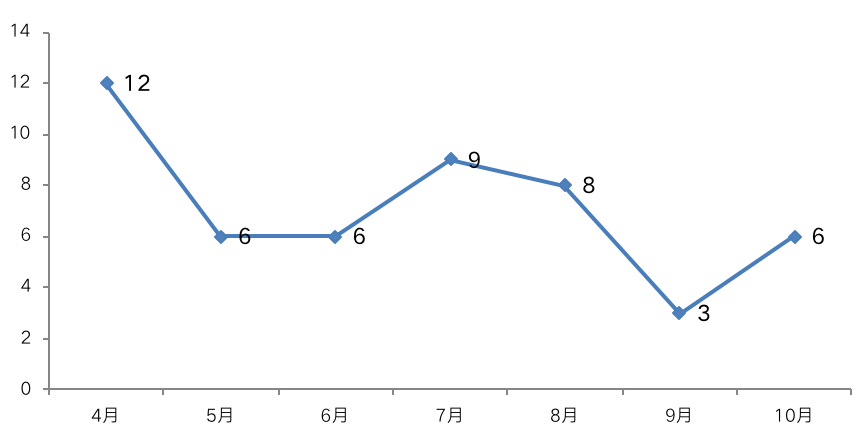 就樓板價(jià)TOP50地塊月度成交分布來看,在4月達(dá)到12幅的高峰值之后,5、6月高地價(jià)數(shù)量逐漸減少。