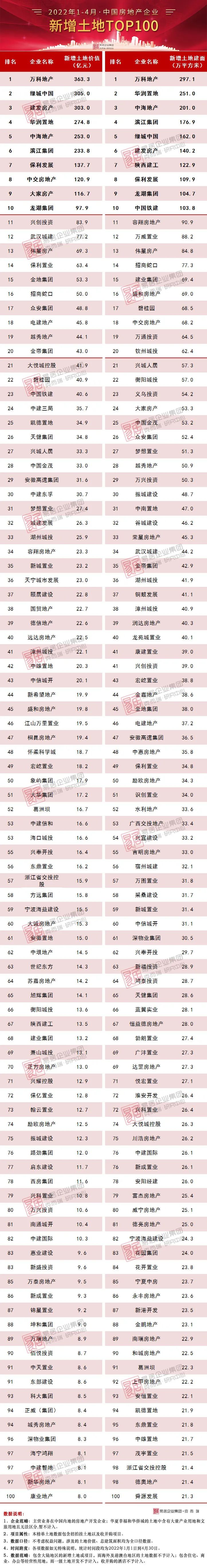 原標(biāo)題: 2022年1-4月中國房地產(chǎn)企業(yè)新增貨值TOP100排行榜