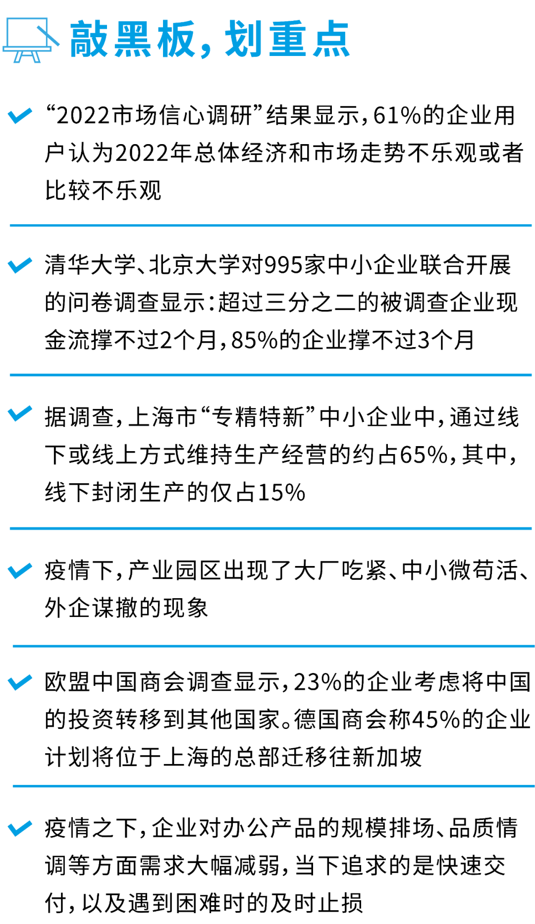 據清華大學、北京大學聯合開展了對995家中小企業受新型冠狀病毒感染肺炎疫情影響的情況及訴求的問卷調查顯示:超過三分之二的被調查企業現金流撐不過2個月,85%的企業撐不過3個月。