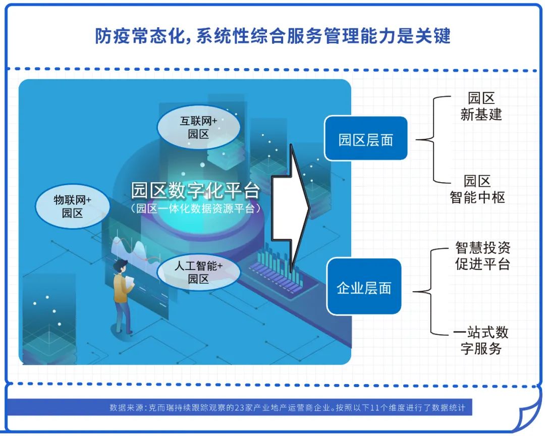 二是園區優質運營成為企業必選項,疫情考驗著園區的和服務的效率和專業程度。如協助園區企業推進復工復產審批及政策申報;以園區為單位建立與政府對接的“專用通道”,解決企業復工復產后的餐飲、住宿、通行證、核酸檢測服務等問題。
