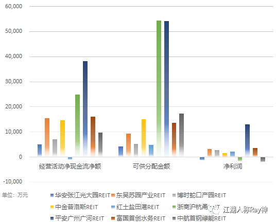 那么,如果我們?cè)倏纯此麄冏罱K的凈利潤(rùn)表現(xiàn)呢?這的確是可以輔助評(píng)判的一個(gè)維度。不過(guò),通過(guò)財(cái)務(wù)報(bào)表你可能會(huì)發(fā)現(xiàn)有好幾個(gè)REITs的凈利潤(rùn)是虧損的。即便是那些盈利的REITs,也有人是依靠退稅等因素把利潤(rùn)拉上去,比如中金普洛斯。這主要是因?yàn)閮衾麧?rùn)受到了折舊攤銷的影響,短期賬面上出現(xiàn)虧損并不奇怪,所以關(guān)鍵還是要看現(xiàn)金流是否健康——這也是為什么凈利潤(rùn)虧損的REITs還能夠進(jìn)行分紅的原因。不過(guò),作為進(jìn)入REITs的成熟資產(chǎn),如果長(zhǎng)期虧損那還是需要慎重地加以審視的。