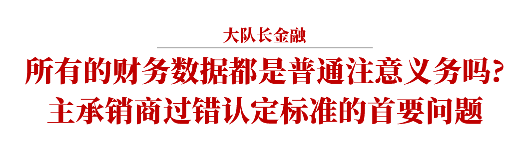 總的來說, 區(qū)分是否有專業(yè)機(jī)構(gòu)單獨出具意見是認(rèn)定主承銷商過錯的“分水嶺”, 但這條“分水嶺”究竟在哪里卻不見得都是這么清晰的, 對于“一期”部分財務(wù)數(shù)據(jù)究竟誰來承擔(dān)責(zé)任, 既是投資者起訴時的機(jī)會, 也應(yīng)當(dāng)是主承銷商抗辯時的重點。