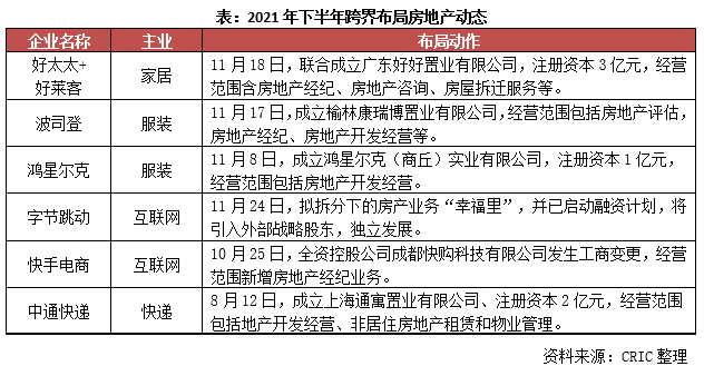 告別高增長(zhǎng)、高盈利時(shí)代,當(dāng)前房地產(chǎn)行業(yè)進(jìn)入低增長(zhǎng)和強(qiáng)調(diào)控期,風(fēng)險(xiǎn)積聚,顯然已經(jīng)過(guò)了進(jìn)駐熱潮期,不再是其他行業(yè)跨界的最優(yōu)選。但是今年下半年以來(lái),字節(jié)跳動(dòng)、快手電商、鴻星爾克、波司登、中通快遞等企業(yè)仍不懼市場(chǎng)寒意,通過(guò)拆分、成立子公司的形式逆勢(shì)布局。
