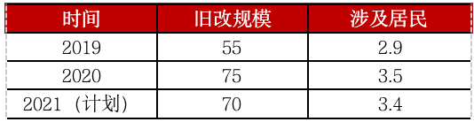 表:2019-2021上海舊區(qū)改造規(guī)模(萬平方米、萬戶)
