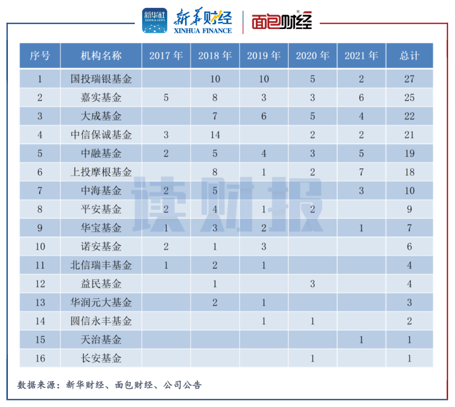 將時(shí)間跨度延伸至2017-2021年,22家信托系基金公司中4家機(jī)構(gòu)累計(jì)清盤基金數(shù)量超過20只。其中,國(guó)投瑞銀清盤27只基金,位列行業(yè)第一,隨后為嘉實(shí)基金、大成基金,各清算25只、22只基金。