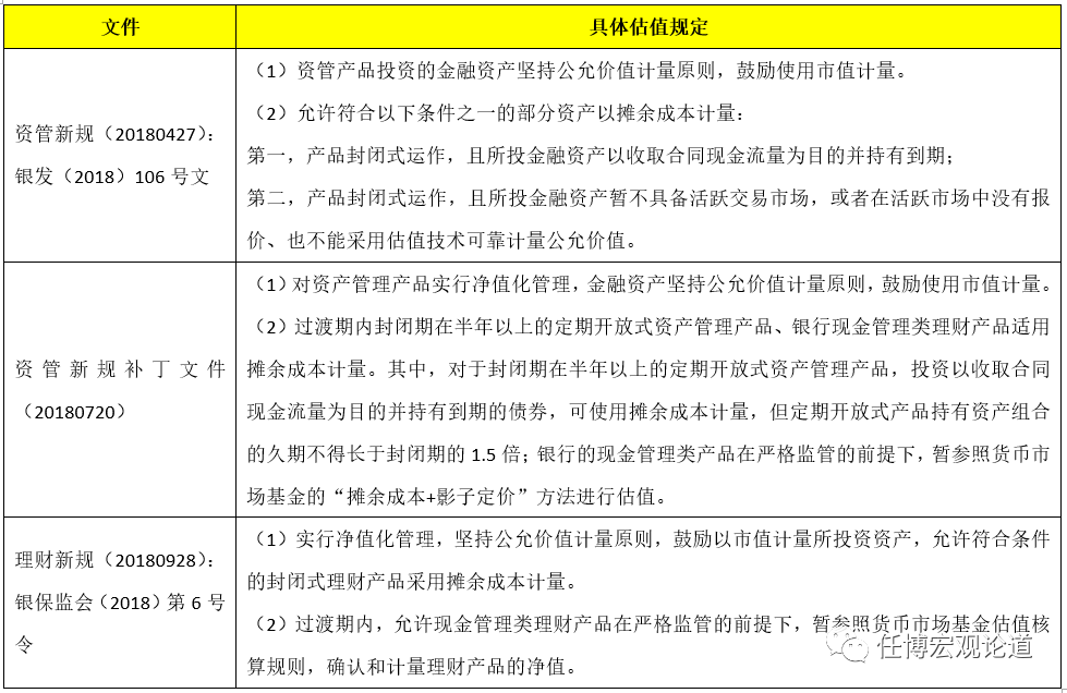 (一)資管新規(guī)對(duì)資管品估值的規(guī)定