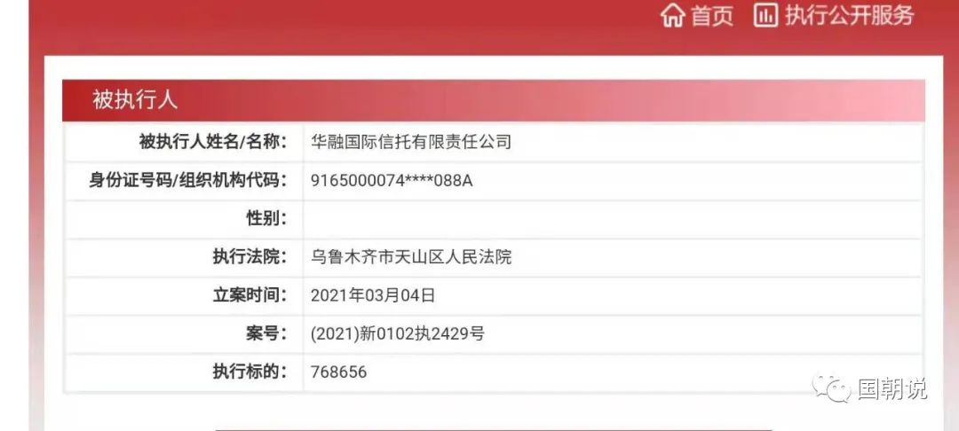 2021年3月4日,華融信托有限被法院列為被執行人,執行標的為768656元,執行金額雖然不高,不過這個案件卻反映出華融信托內部管理混亂,存在著巨大管理漏洞。