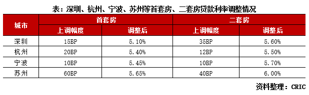近日,深圳、杭州、寧波、蘇州等城市相繼上調房貸款利率。深圳二套房貸利率上漲35BP,蘇州首套、二套房貸利率則分別上調60BP、40BP。除了核心一二線城市之外,我們還留意到,紹興、徐州等三四線城市也紛紛迎來房貸利率上漲潮。