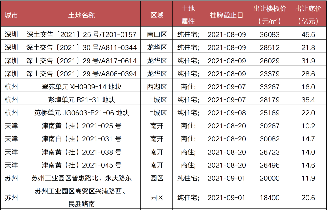 此外,天津南開區、蘇州工業園區、濟南歷城區、福州晉安區等均掛出多宗優質地塊,房企也可重點關注。