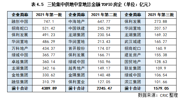 2、企業(yè)表現(xiàn):保利穩(wěn)坐拿地金額榜首,三輪集中供地均位列前十(略)