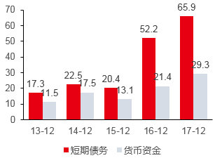 國(guó)購?fù)顿Y近幾年短期債務(wù)和貨幣資金情況