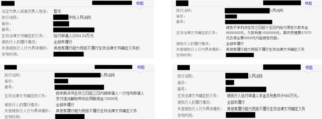 據(jù)調查,除了與A公司的債務糾紛,C某還涉及四條失信人信息,全部未履行,共計涉及金額約3824.7萬。