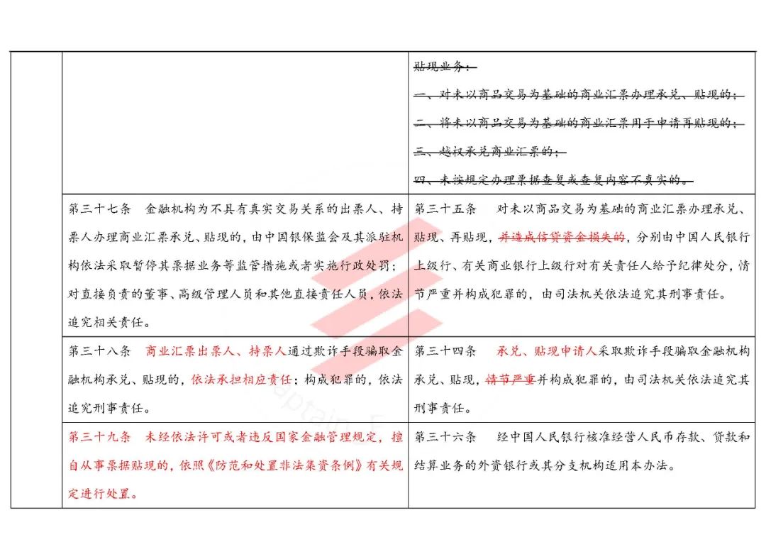 商業匯票承兌、貼現與再貼現管理辦法(征求意見稿)新舊對比