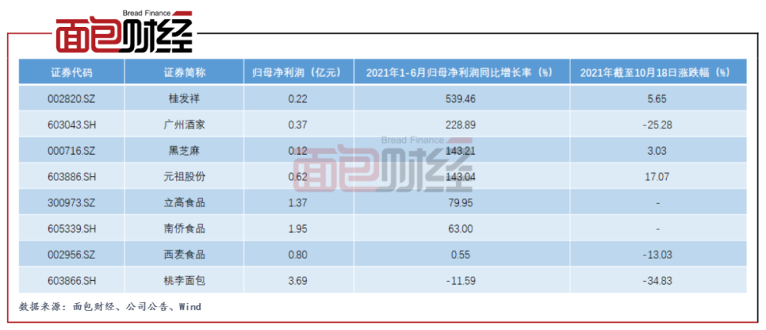 圖4:8家烘焙食品企業(yè)2021年上半年業(yè)績(jī)與股價(jià)表現(xiàn)